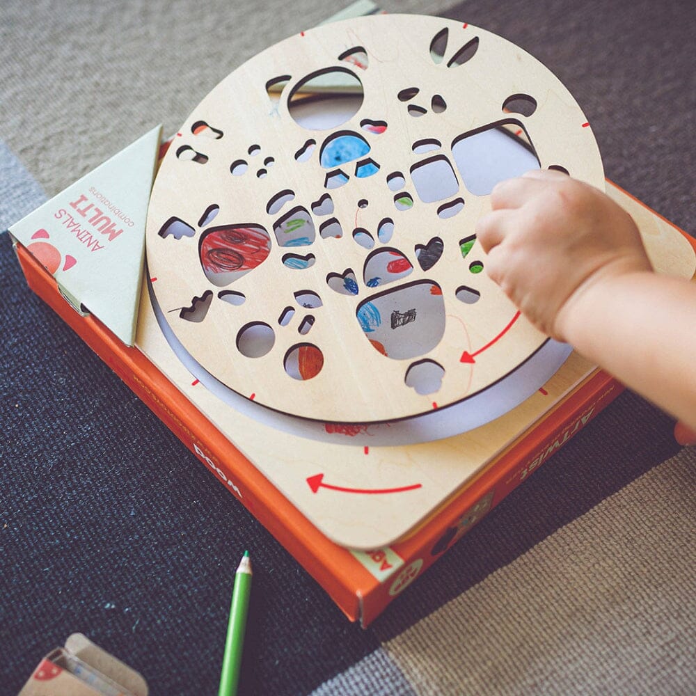 Spin, trace, and create hundreds of animal combinations with the ArtTwist stencil! Kids simply twist the stencil to mix and match different animal parts, trace the shapes, and color in their unique creations. With endless combinations to explore, ArTwist sparks imagination, boosts fine motor skills, and keeps kids creatively engaged at home or on the go. A compact and mess-free activity for hours of fun and artistic discovery!