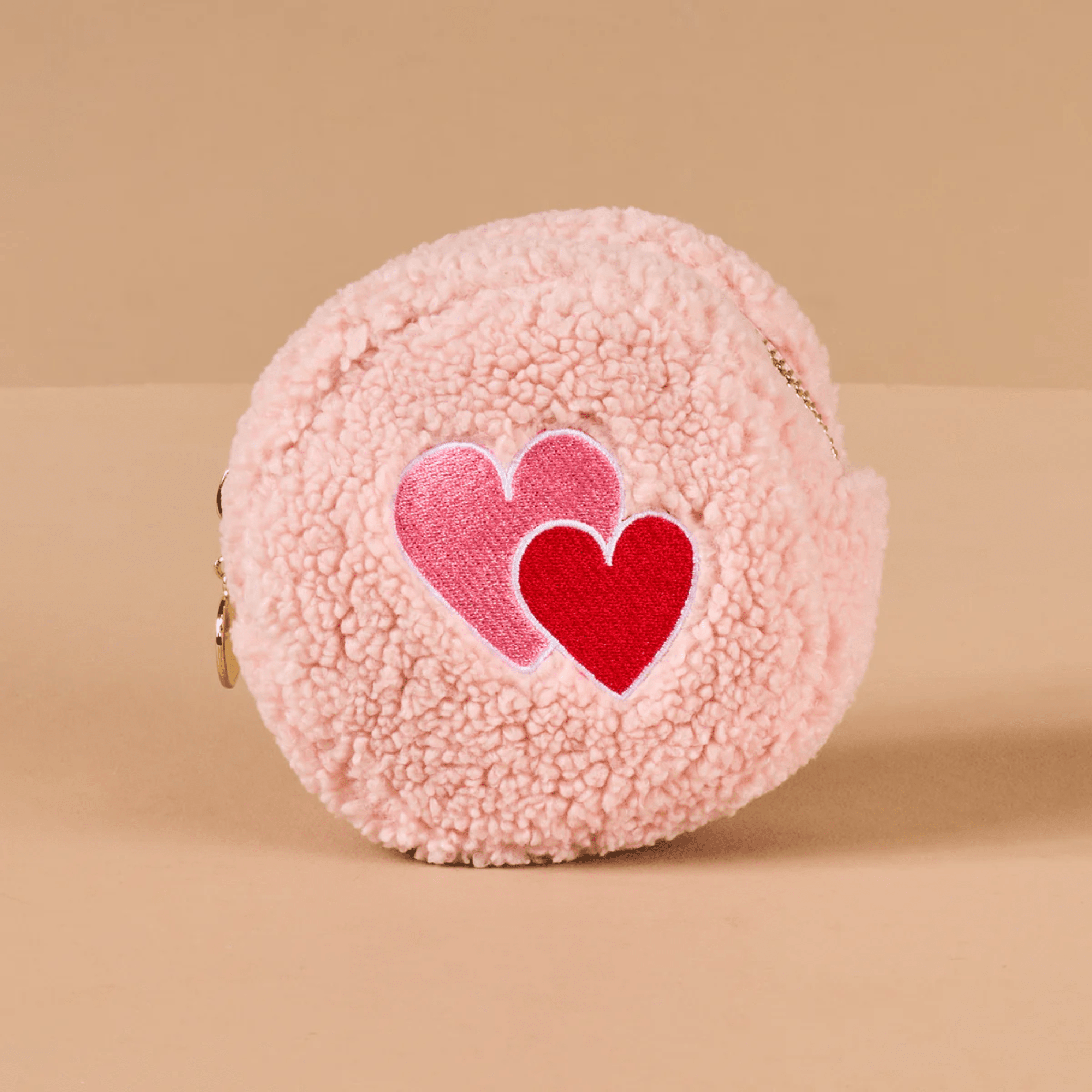 Keep your essentials safe, cozy, and oh-so-sweet with our Valentine’s Teddy Pouches! Made from irresistibly soft sherpa material, these pouches feature adorable details that make them a joy to carry. The wipeable interior lining and chic gold hardware make them perfect for cosmetics, travel, purse organization, or little everyday treasures.