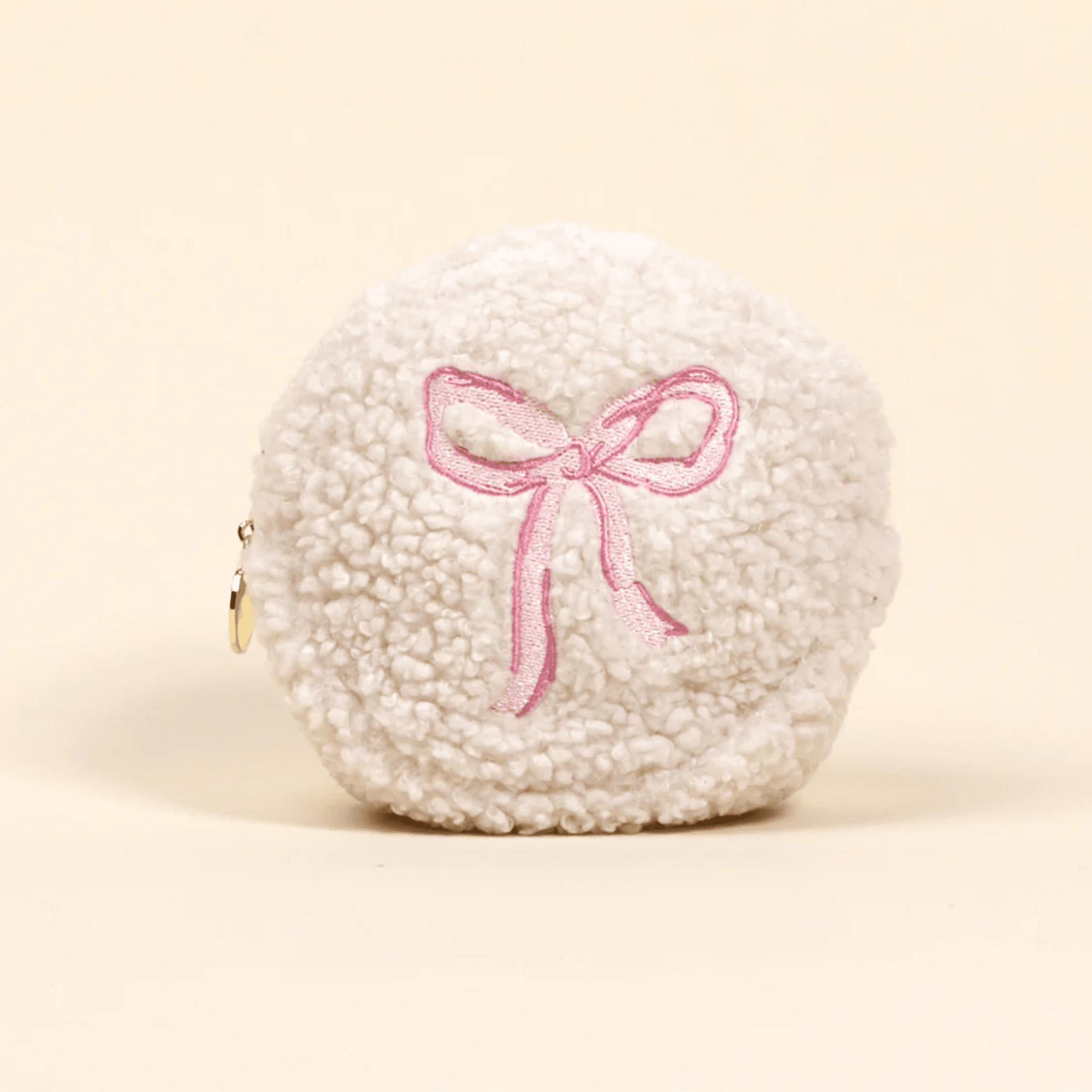 Snuggle up to organization with this adorable Bow Circle Teddy Pouch! Crafted from irresistibly soft sherpa fabric, it's the perfect companion for your daily essentials. The wipeable interior lining keeps things practical while the printed inner fabric and gleaming gold zipper add delightful details that make peeking inside just as fun as carrying it around. Whether you're stashing makeup, coins, or small treasures, this pouch brings cozy charm and smart functionality wherever you go.