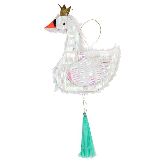 This beautiful swan piñata favor is both a delightful decoration and a fun game for all your guests. Crafted with a shining gold crown and a hanging paper tassel for extra effect.