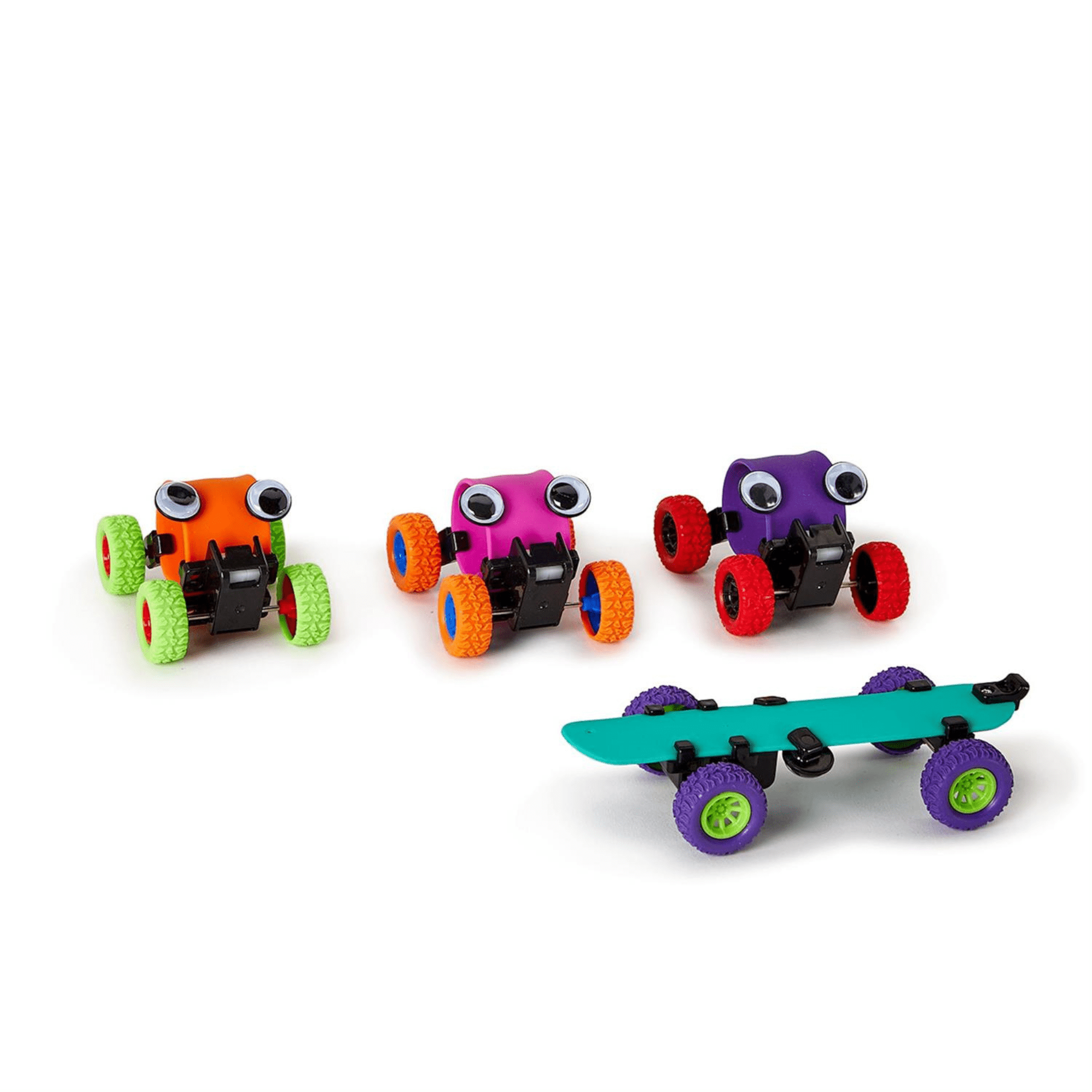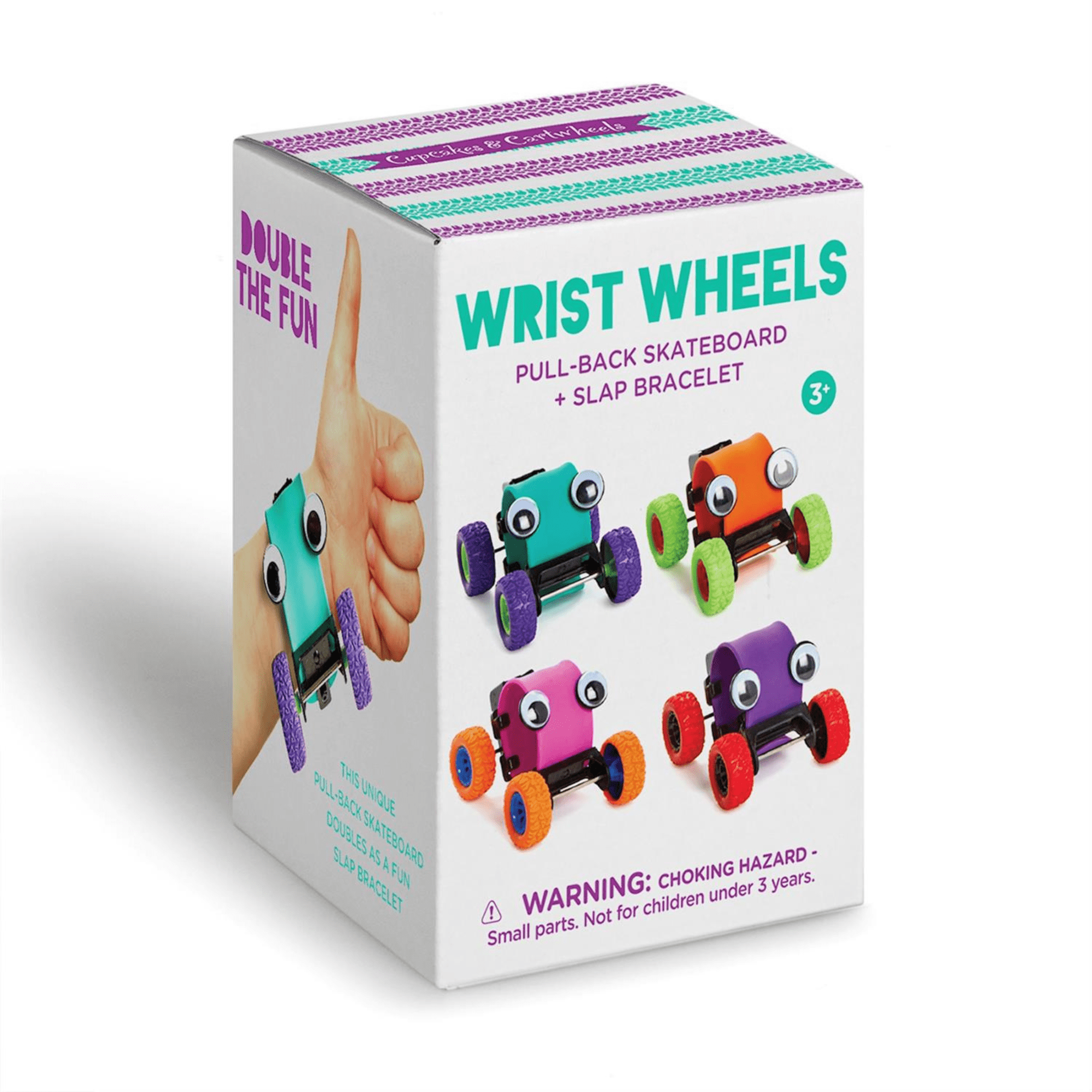 Unleash the fun with this unique pull-back skateboard racer that doubles as a bracelet. Simply pull it back and watch as it zooms forward with lightning speed! With its playful colors, design and googly eyes that jiggle as it races, this toy is sure to bring endless entertainment to kids of all ages.
