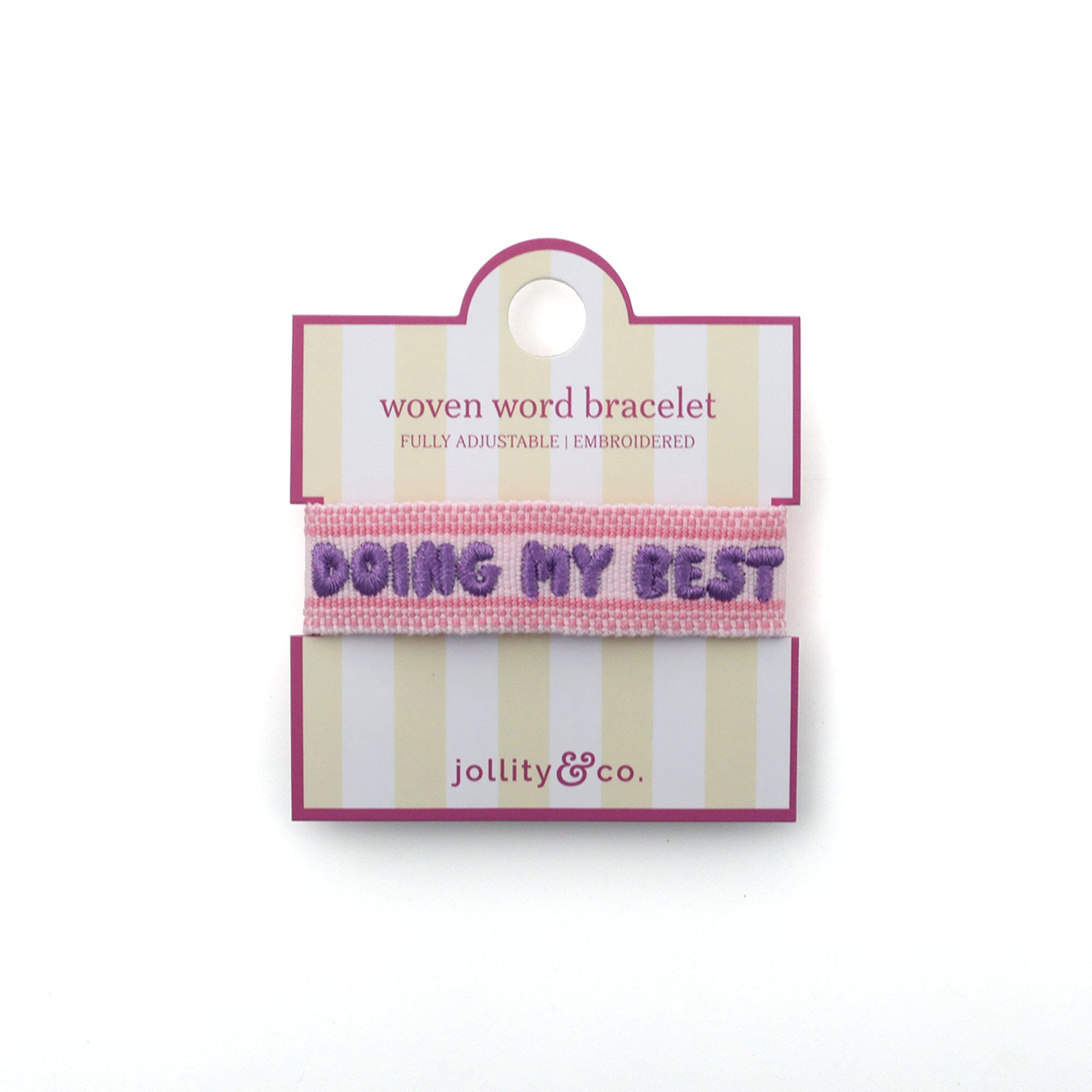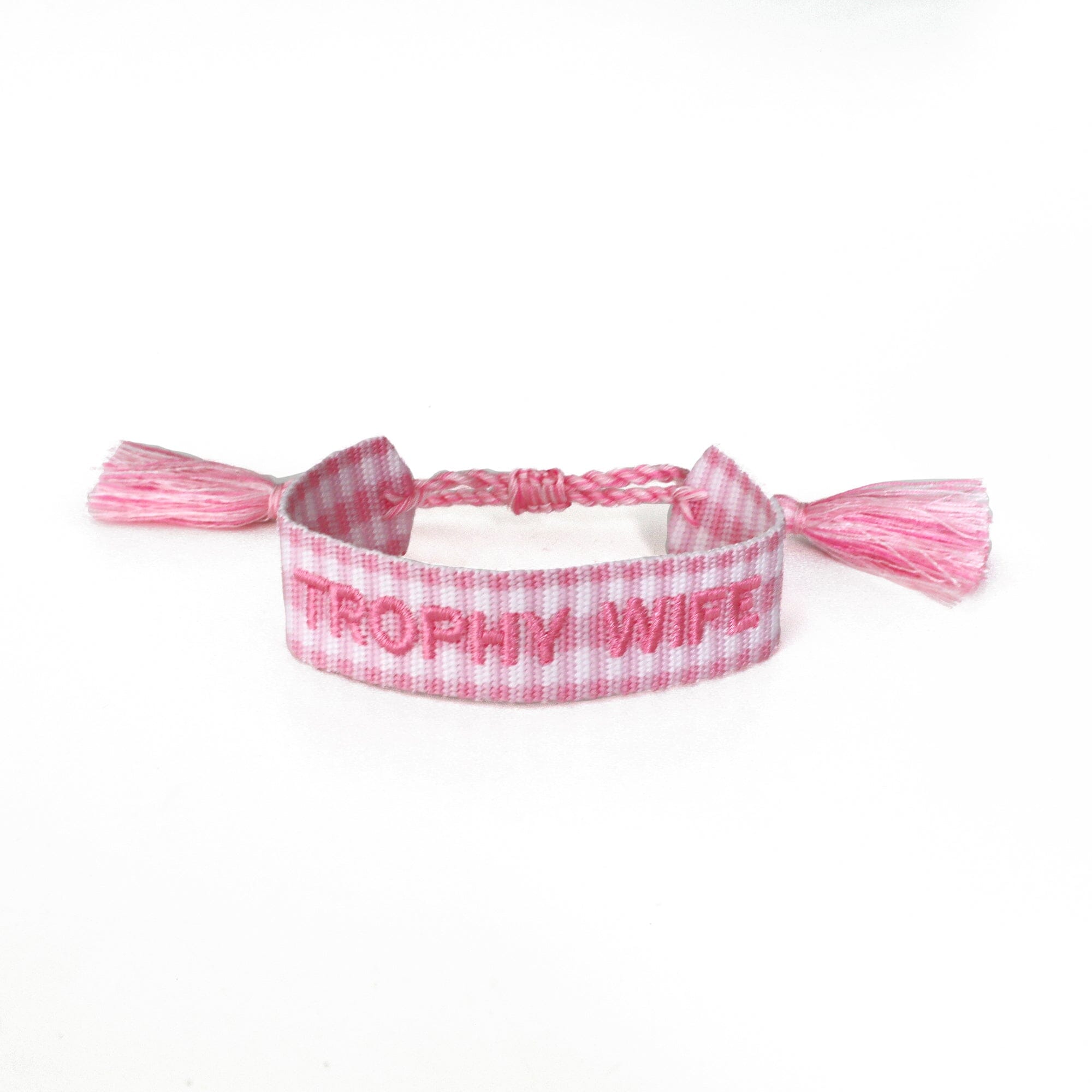 Add a little personality to your stack with our Witty Embroidered Bracelets—the perfect mix of playful and polished. Each bracelet features detailed embroidery with cheeky phrases or sweet motifs, finished with soft tassel ties for an easy, adjustable fit.