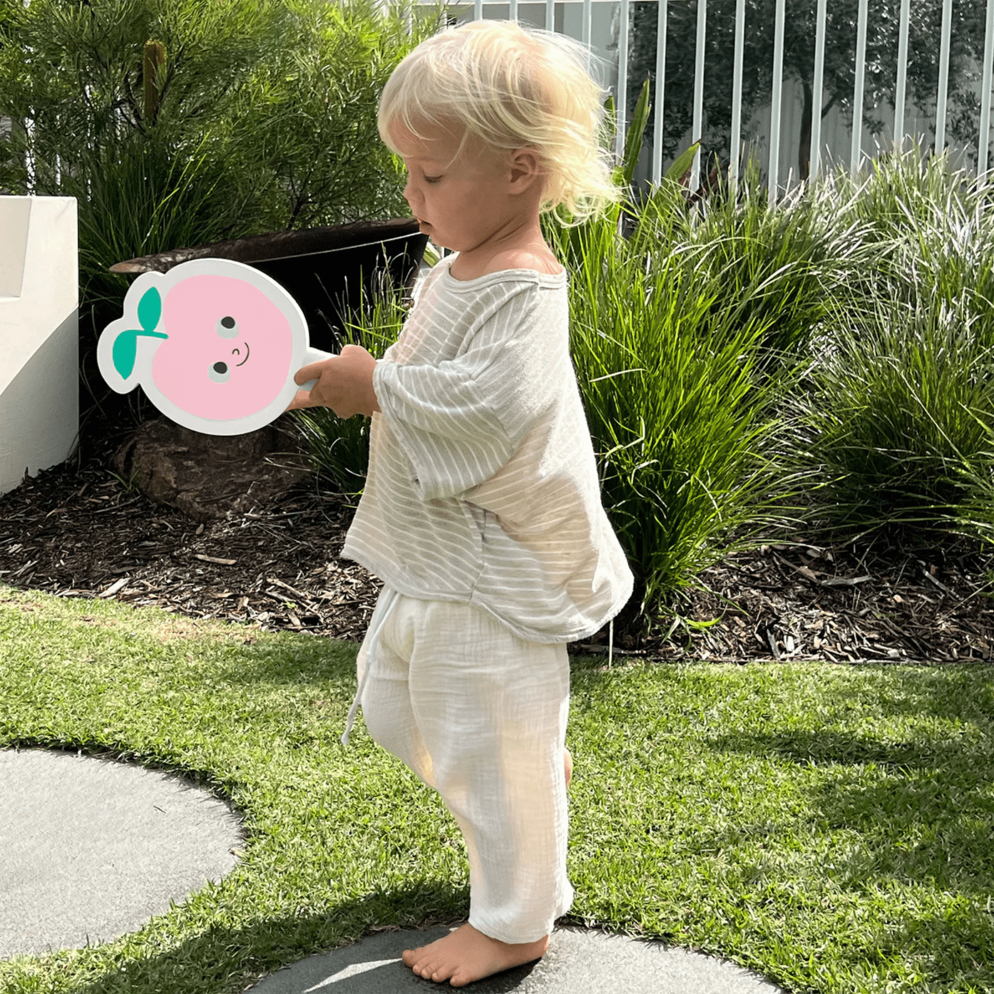 Make your beach days even more fun with this vibrant Velcro beach bat set, featuring Poppy the Peach. Perfect for kids, this lightweight, easy-to-use set brings hours of outdoor entertainment. The bright design adds a pop of color to your summer adventures, while the soft Velcro surfaces ensure a fun and safe game for all skill levels. Whether at the beach or in the backyard, it's the ideal companion for active, sun-filled days.