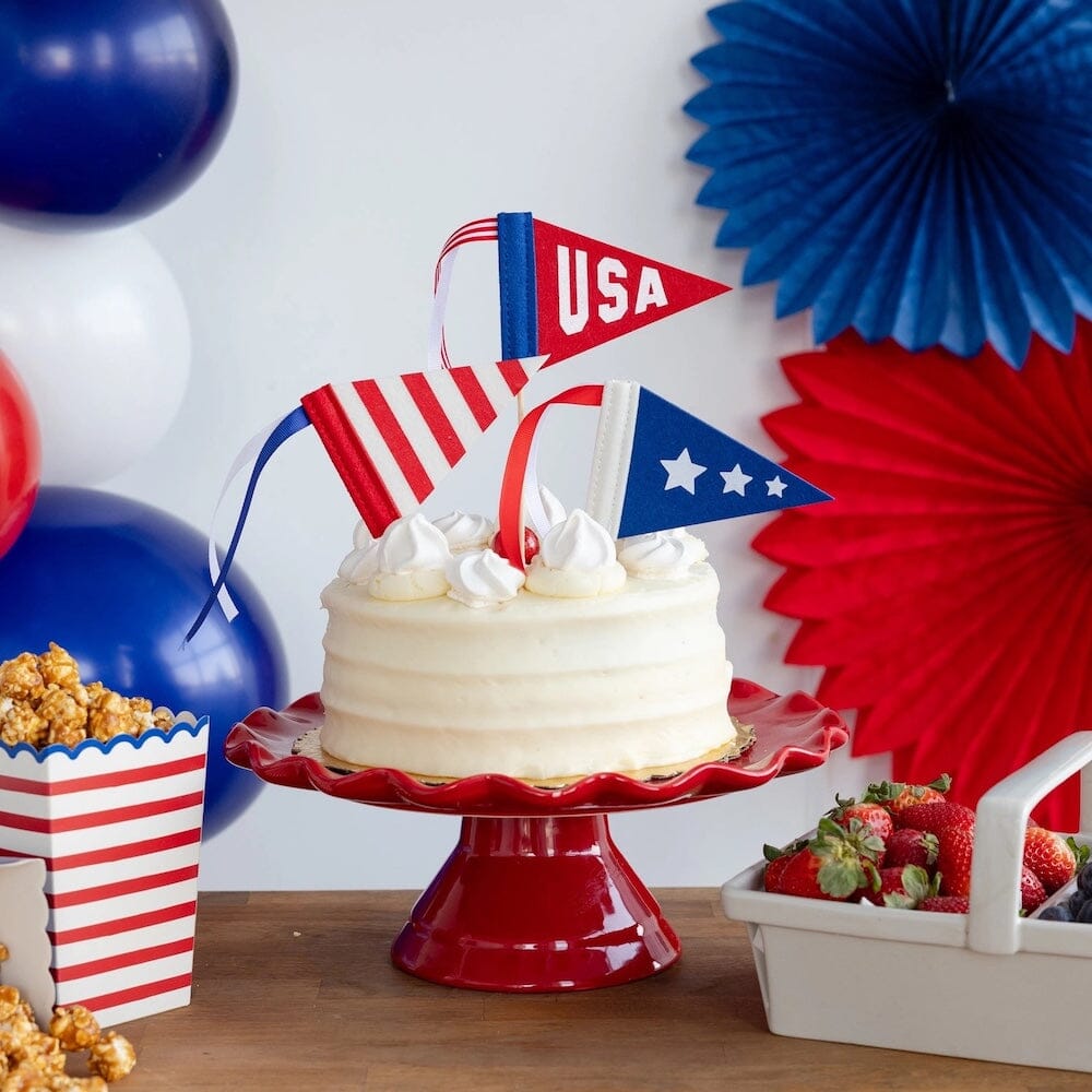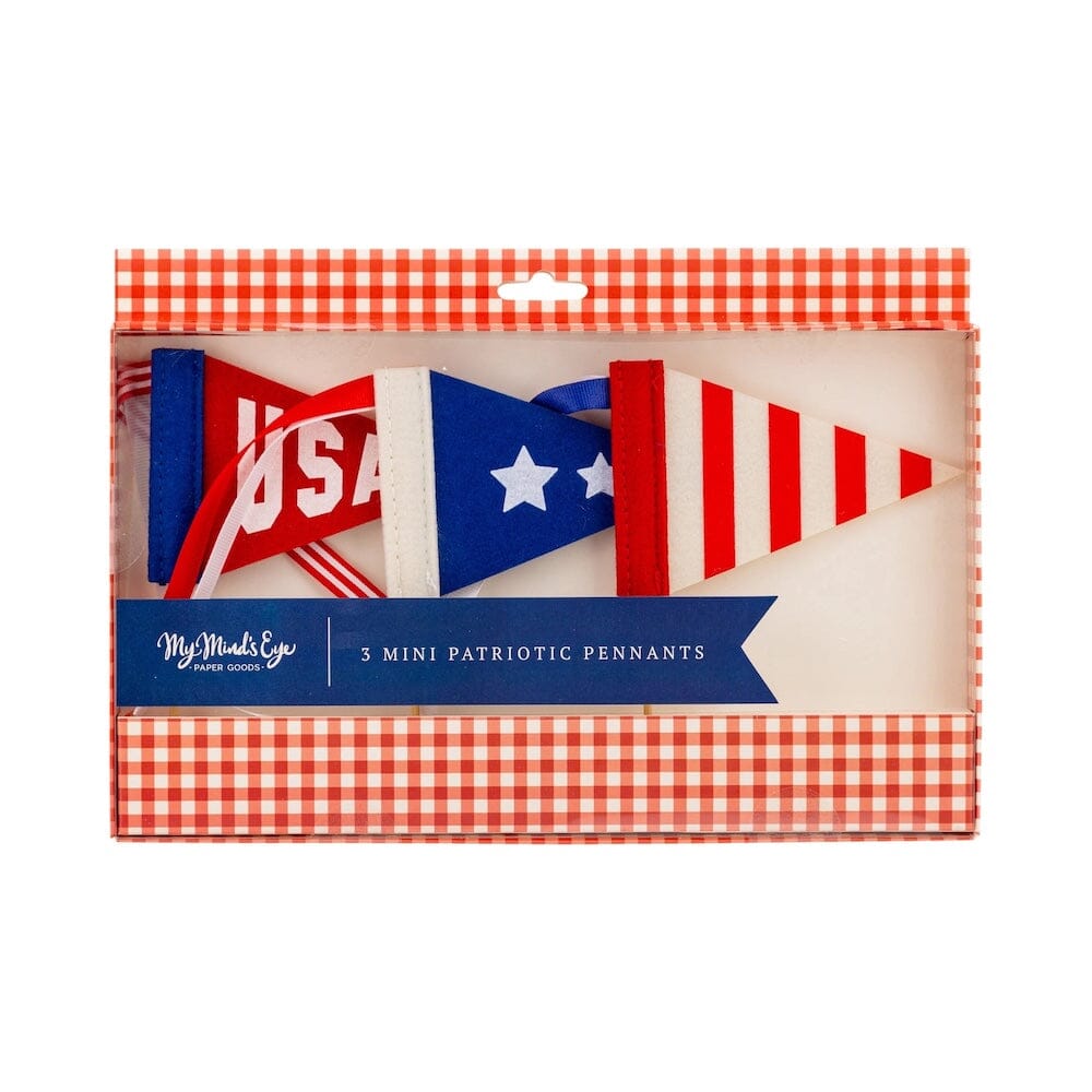 Get ready to party with the Americana Felt Pennant Set. Perfect for Fourth of July decorating, these mini felt pennants will add a touch of patriotic charm to any gathering. Show your pride for the red, white, and blue with this festive set.