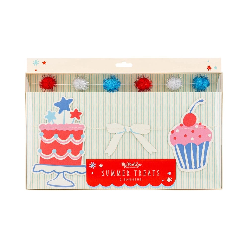 Celebrate in style with our Summertime Icon Banner Set! Featuring patriotic icons, summer treats, and playful pom poms, this banner will add a festive touch to any party or gathering. Get ready to have some fun in the sun with this must-have decoration!