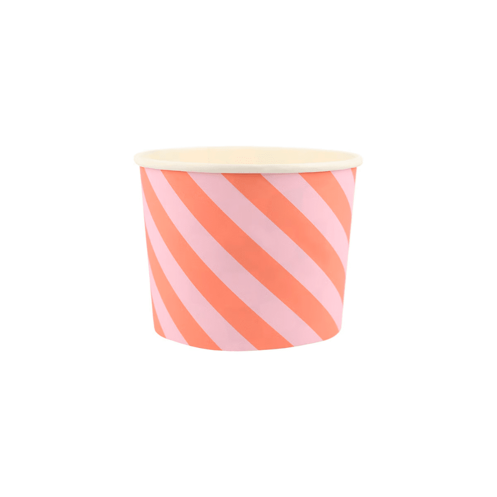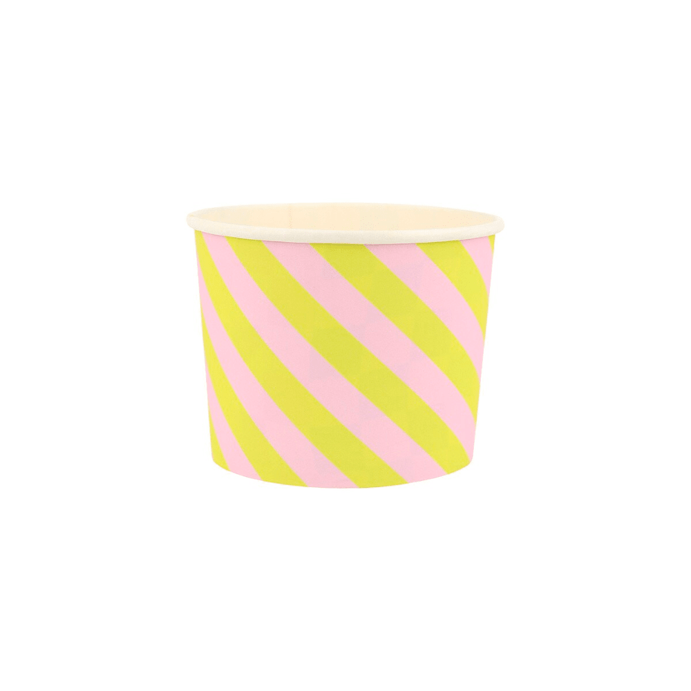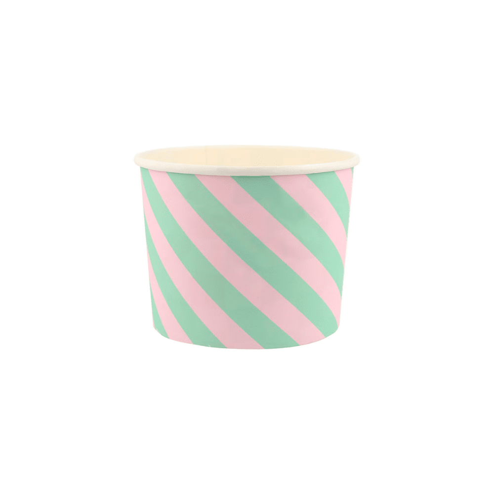 • 12 Striped ice cream cups, in mint, yellow and pink