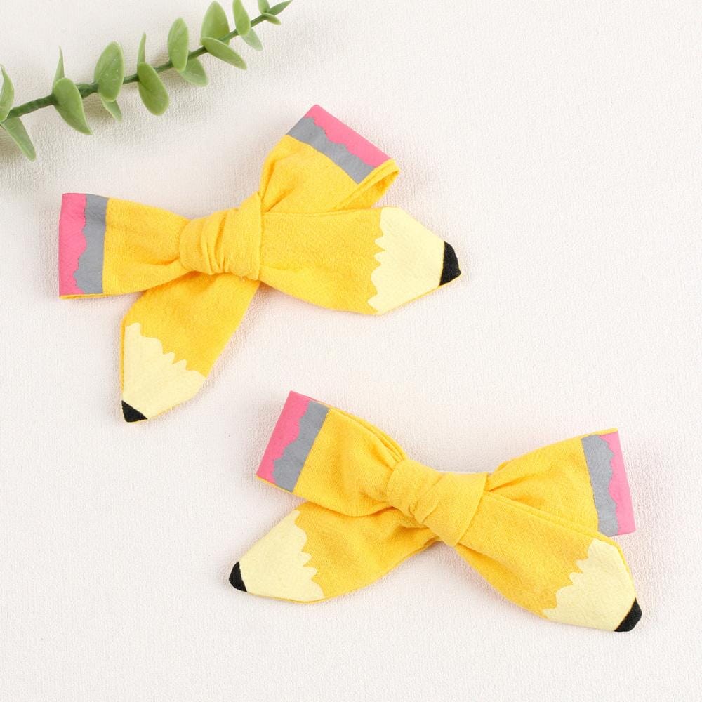 Every little girl needs the perfect hair accessory to complete her look! The pencil bow hair clip set is an adorable hair accessory for celebrating back to school.