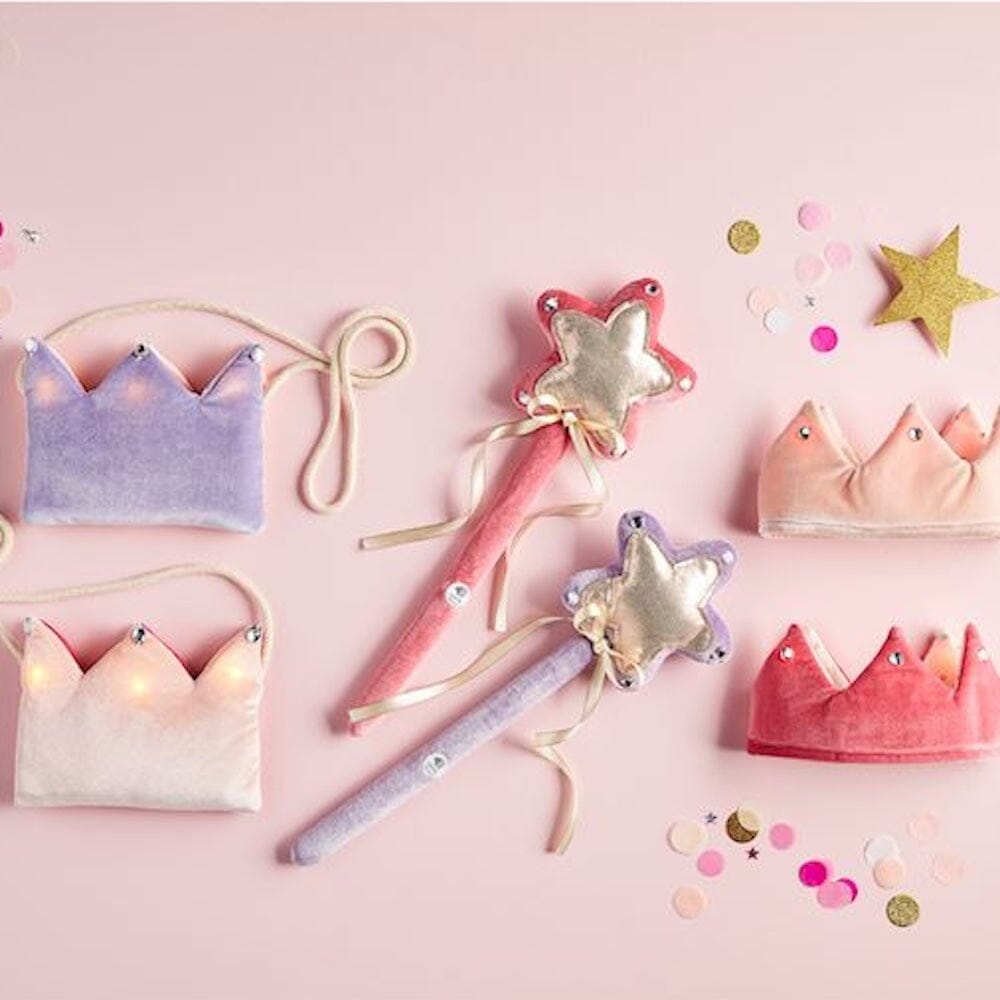This enchanting Light Pink Velvet Light-Up Crown is a delightful accessory that adds a touch of magic to any occasion. Crafted from luxurious velvet, this crown is adorned with sparkling rhinestones and elegant pearl details, creating a regal and sophisticated look. The crown features built-in LED lights that illuminate with a gentle glow, perfect for making any child feel like royalty. An elastic band ensures a comfortable and secure fit for little ones. Made from 100% polyester, it is both durable and soft to the touch. Batteries are included, so the fun can begin right away.